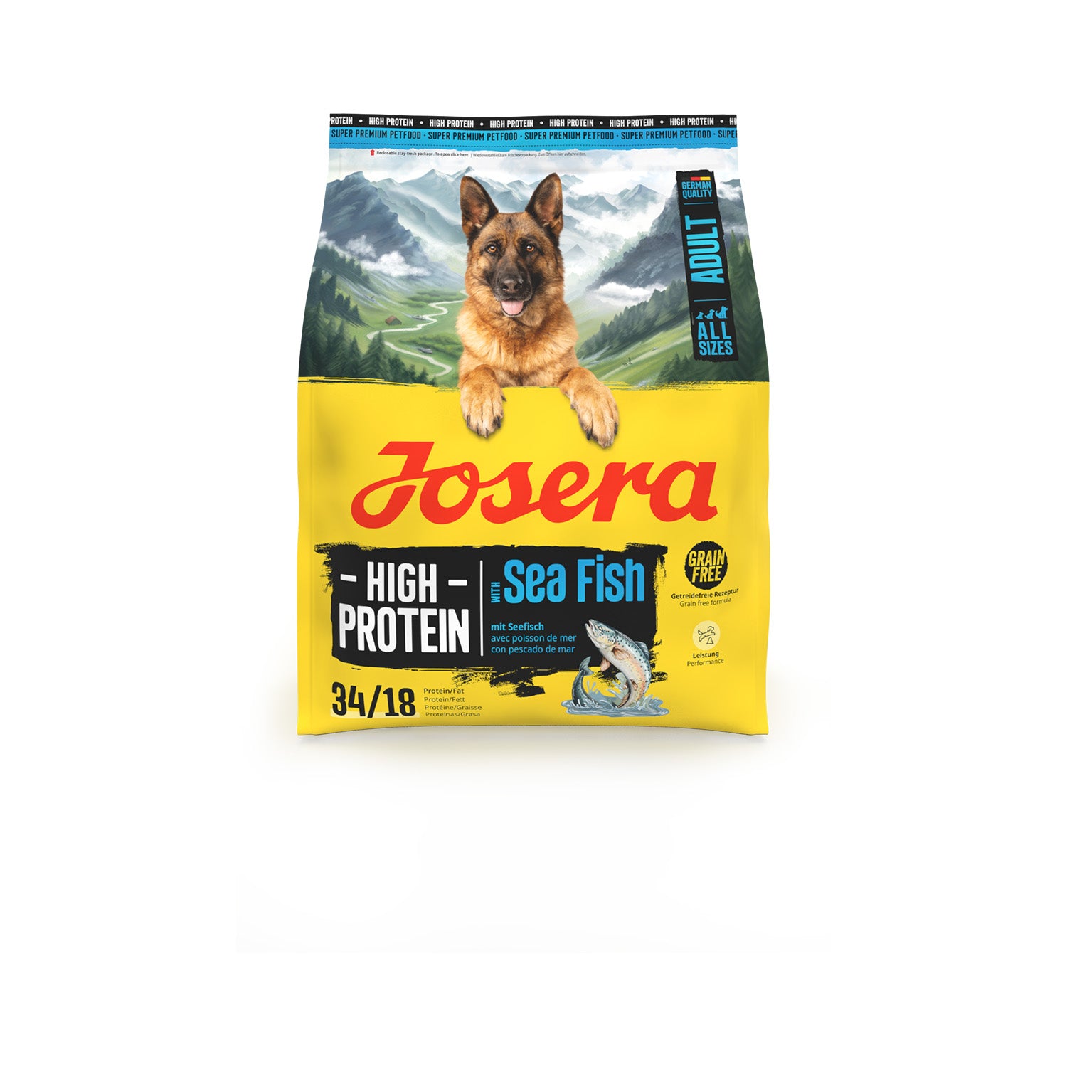 Josera High Protein Sea Fish el alimento seco sin cereales contiene una elevada proporción de valiosas proteínas que proporciona energía a los perros adultos activos. La gran cantidad de proteínas de salmón garantiza que el alimento sea perfecto para los que practican deportes caninos o rinden a un alto nivel todos los días como perros de trabajo. La receta sin cereales contiene ingredientes seleccionados para una buena digestibilidad y sabor: hierbas y fruta, así como batata y proteína de guisante, completan perfectamente el menú con pescado de mar. Por consiguiente, el alimento para perros no contiene patata. La L-carnitina apoya además el metabolismo lipídico y ayuda a proporcionar energía. Junto con la taurina, favorece la función cardiaca. Los valiosos ácidos grasos del salmón, así como las vitaminas y el mejillón de labios verdes, favorecen una estructura ósea sana y el mantenimiento de unas articulaciones sanas, mientras que los valiosos antioxidantes como la vitamina E y C pueden minimizar el efecto perjudicial de los radicales libres. Estos se forman, entre otros, durante la actividad física.