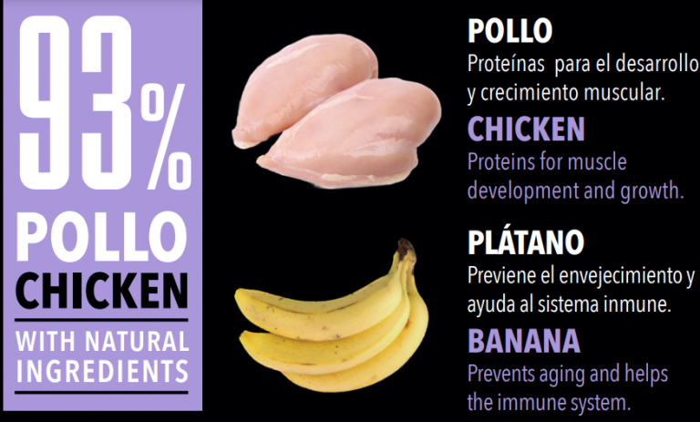 - Alto contenido en pollo fresco: Fuente de proteínas de alta calidad que favorecen el desarrollo muscular y la energía.