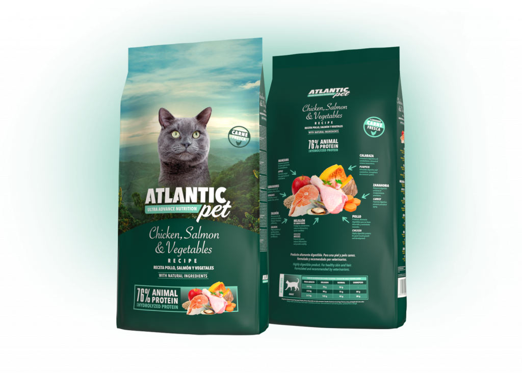 RECETA GATO POLLO, SALMÓN Y VEGETALES